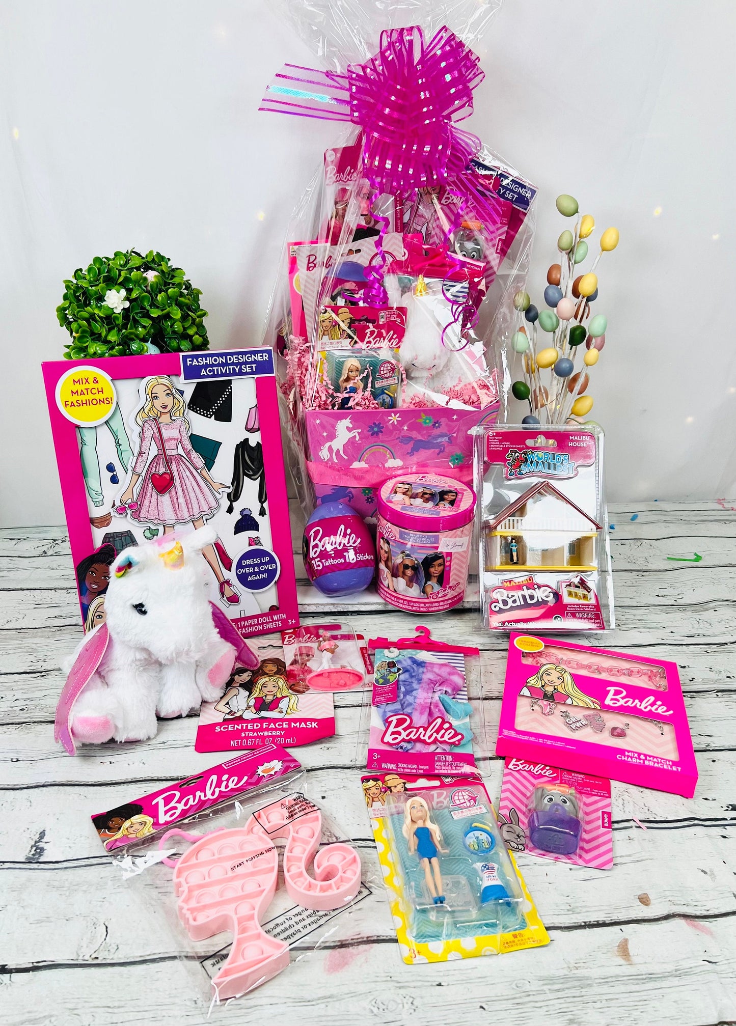 11 Piece Prefilled Pink Fashion Doll Themed Gift Basket girls gift basket easter basket for girls toys accessories| Girls themed birthday