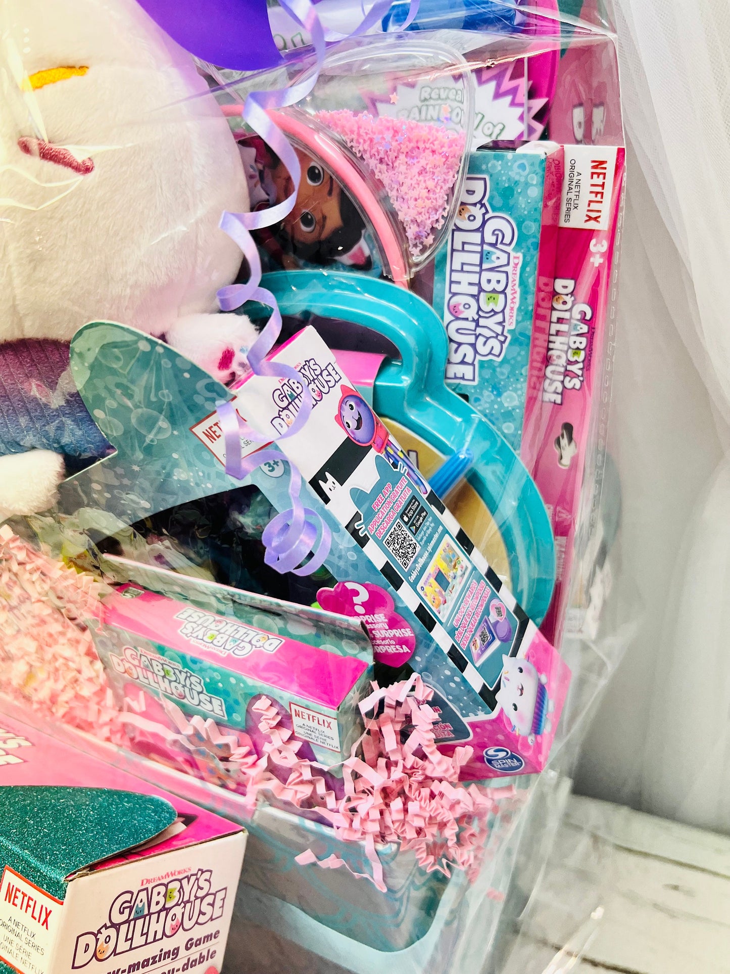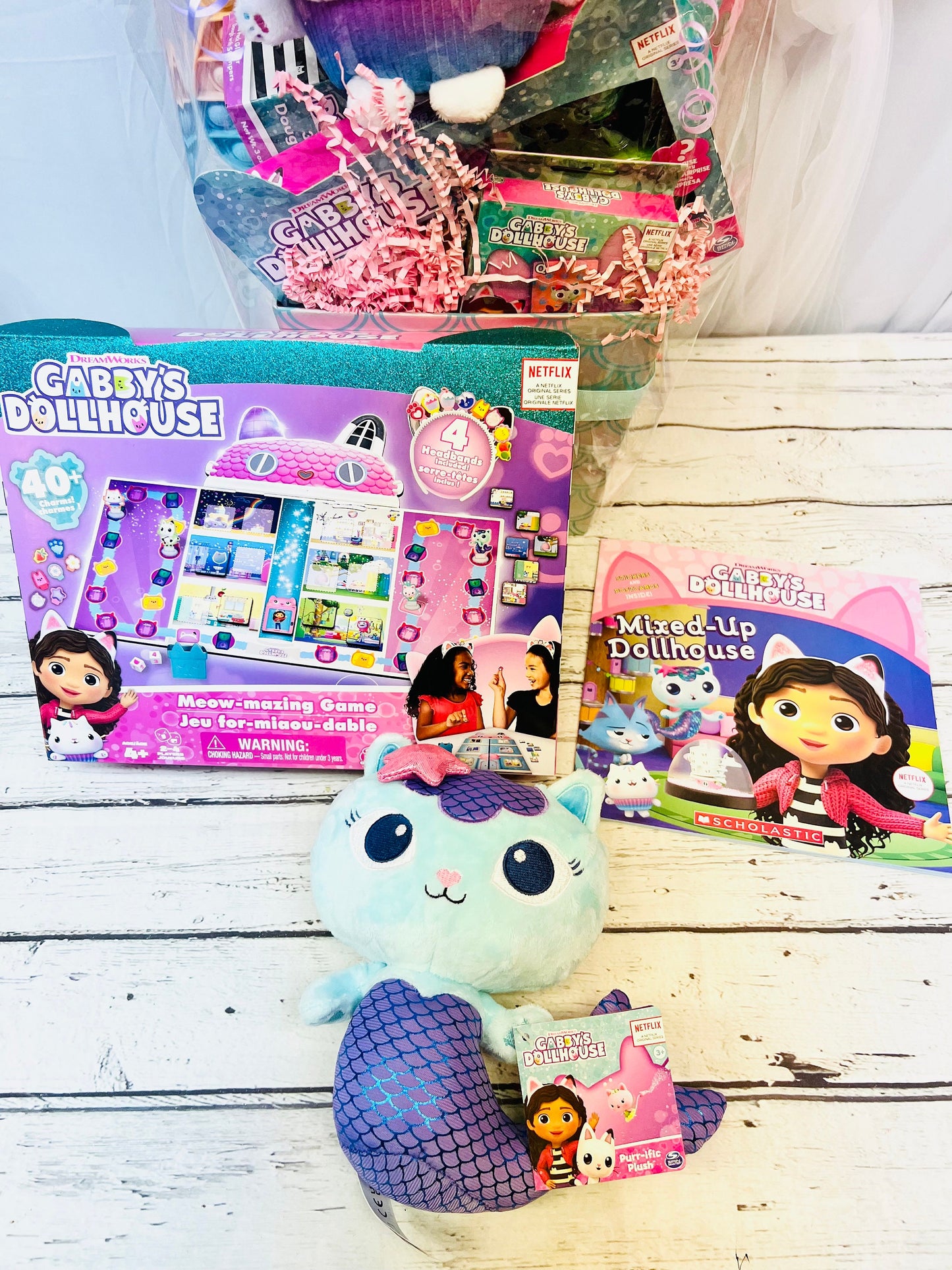13 piece Gabby’s dollhouse pre-filled gift basket for Kids. This basket includes: