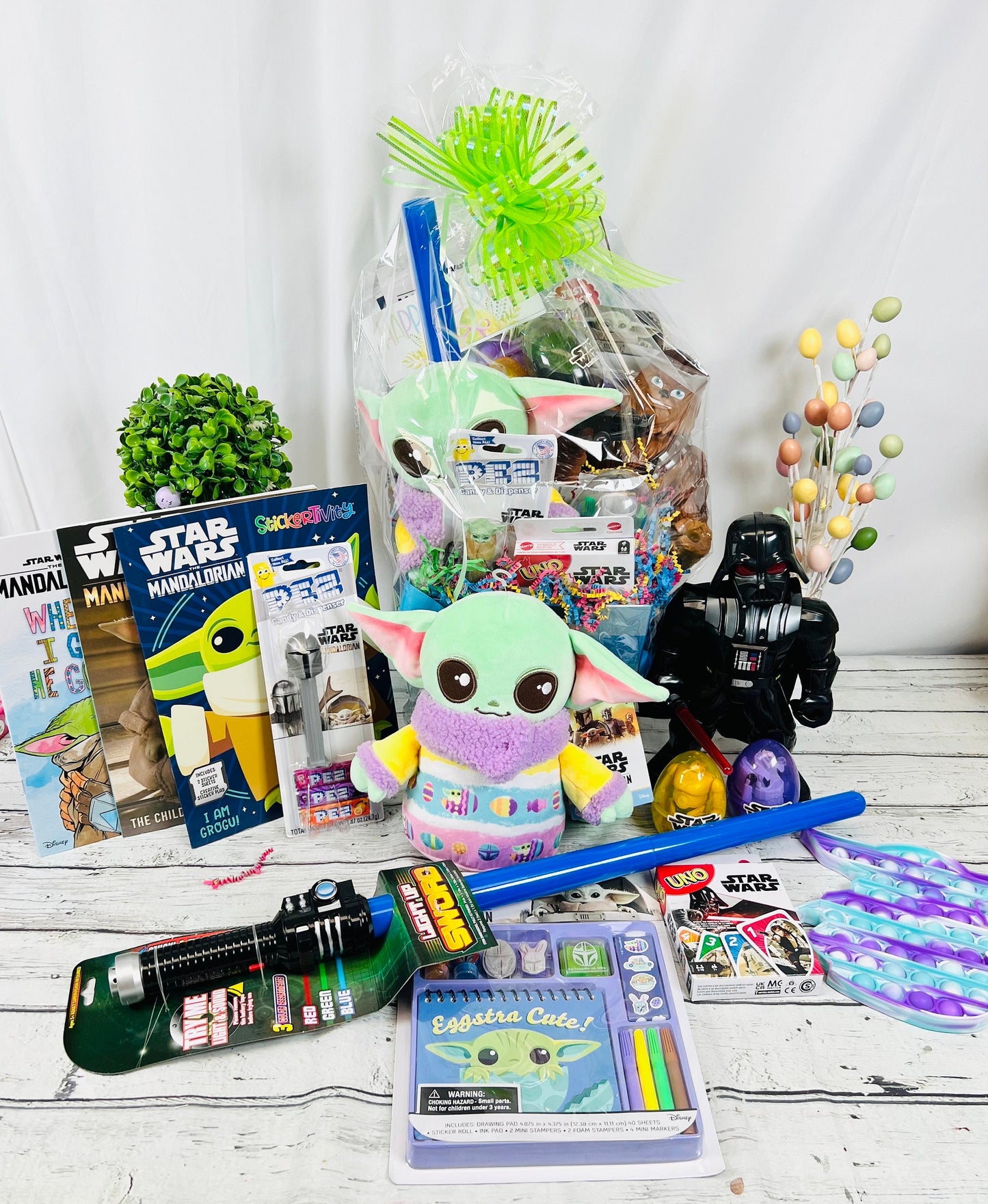 13 Piece Star Wars Easter Basket for kids | Filled Easter Basket | Baby Yoda | Chewbacca | Darth Vader | Easter Accessory for Kids