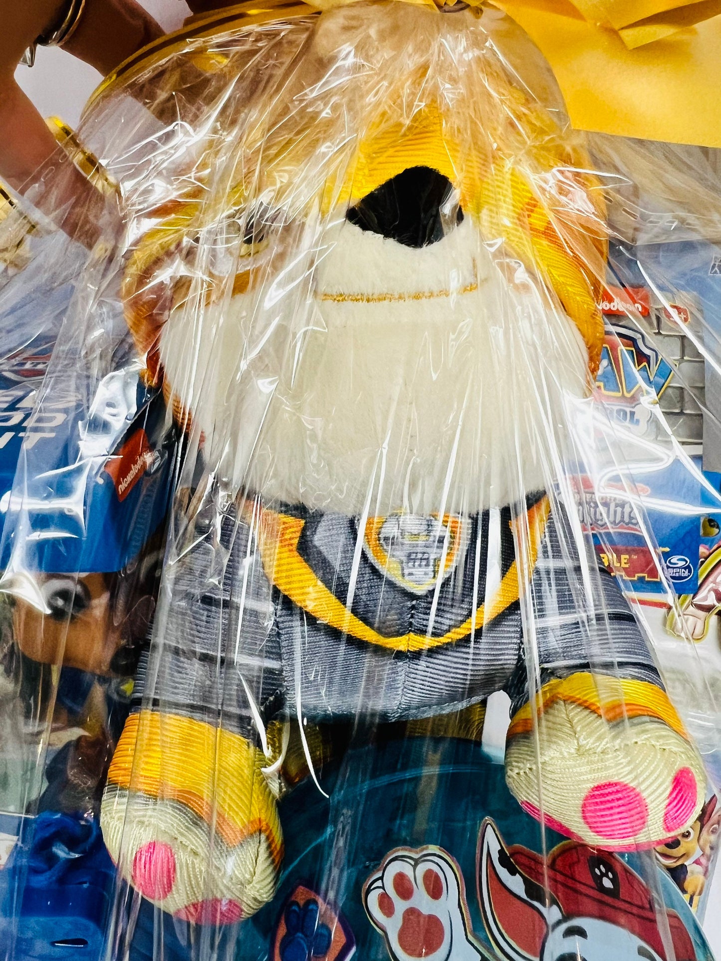 14 piece prefilled Paw Patrol themed basket. This basket is wrapped in clear cellophane and topped with a large bow. This basket includes: