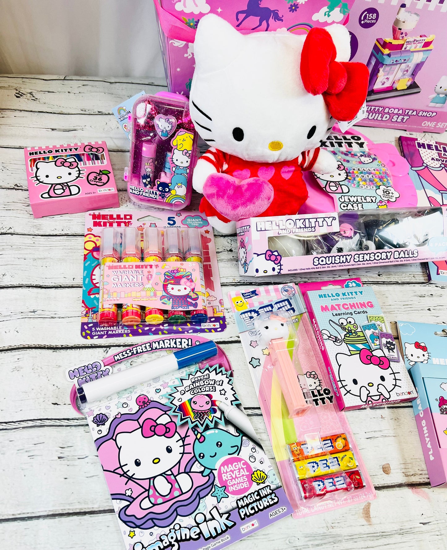 14 piece prefilled Hello Kitty themed gift basket. This gift basket includes: