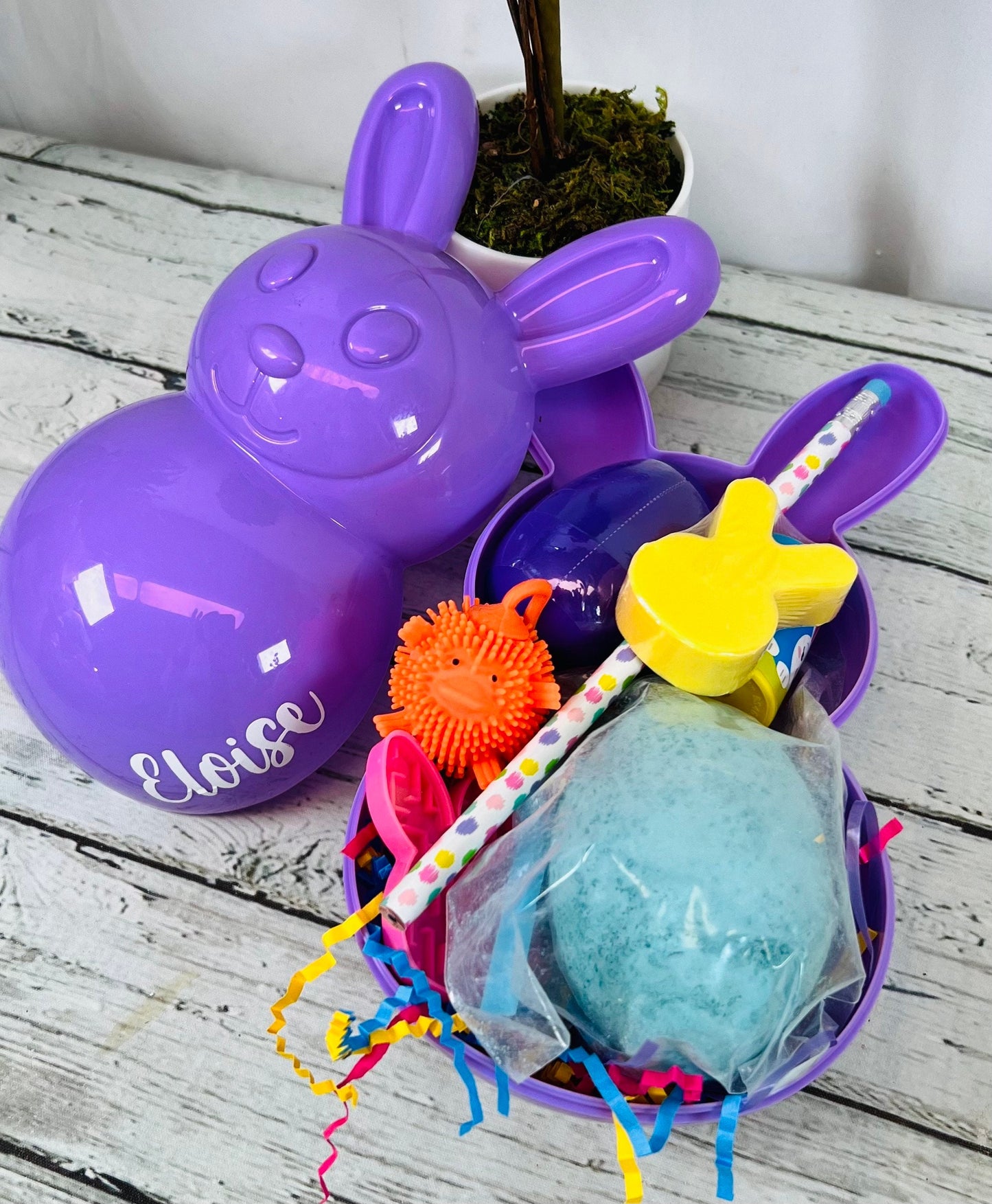 8” prefilled Easter bunny container Personalized Easter toy Easter basket filler