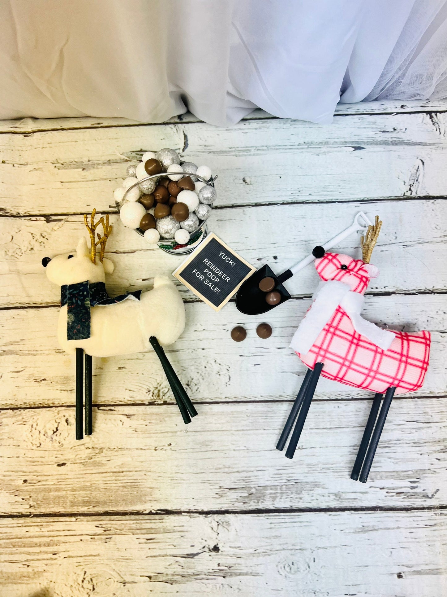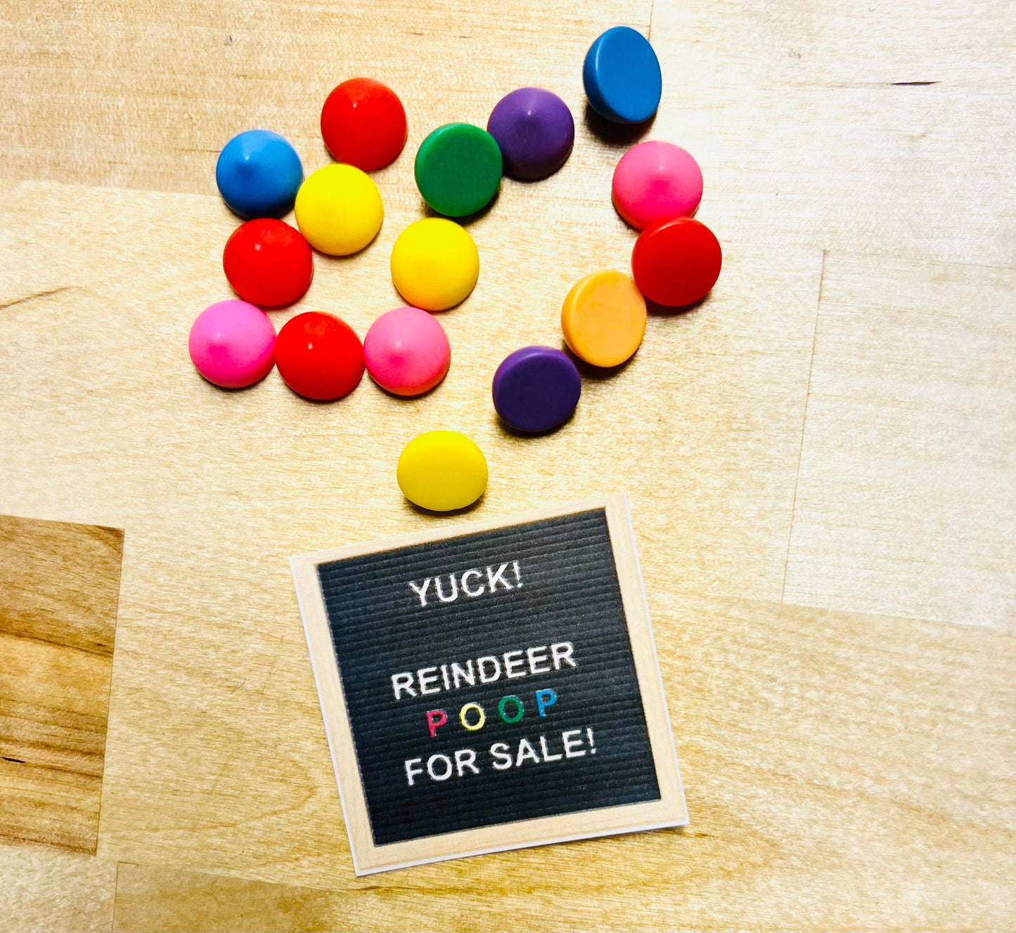1 cardstock sign "Yuck! Reindeer poop for sale!"