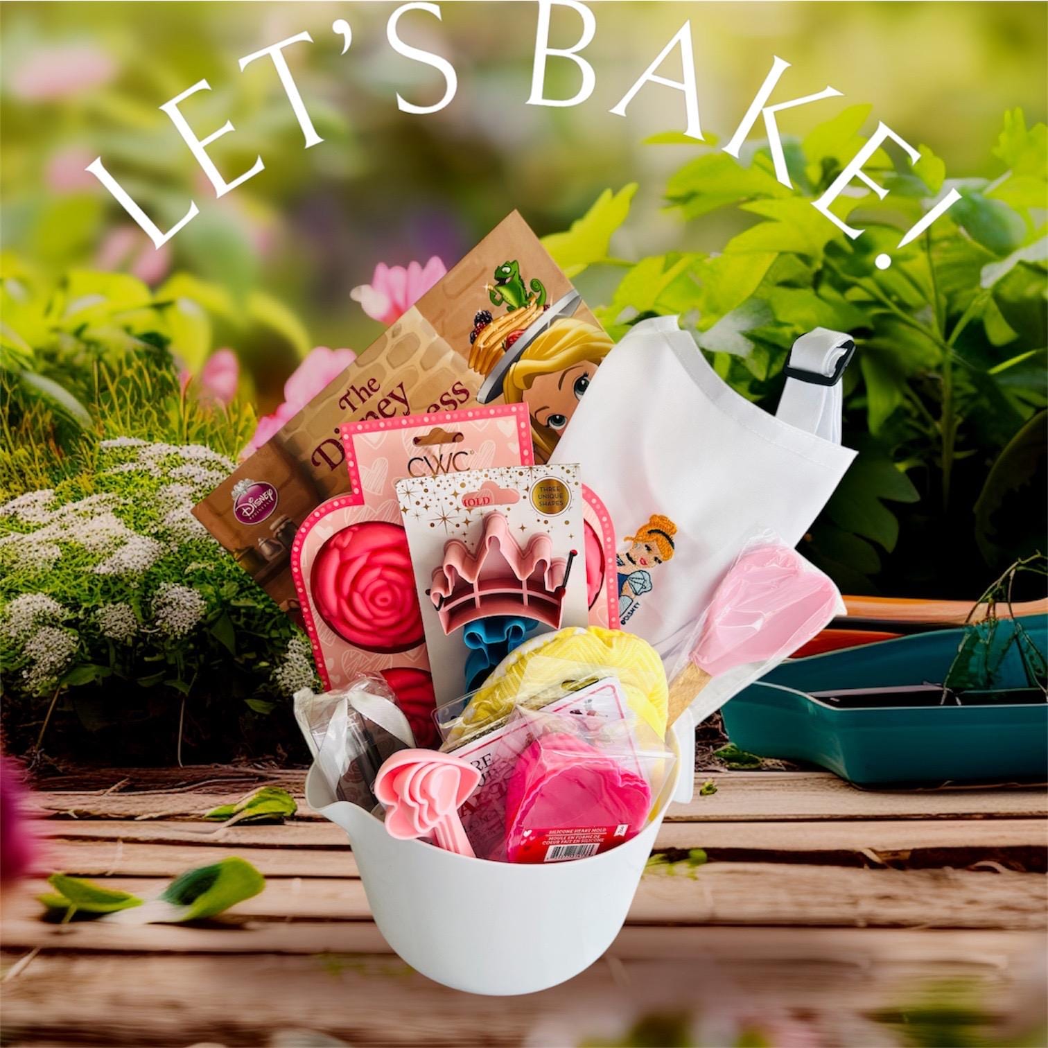 Have a little one looking to bake? This starter set is the perfect gift to get them cooking! Complete with a princess cookbook to help them along the way, this gift set full of magic! This gift is wrapped in clear cellophane and topped with a large bow. The items in this set are placed inside an extra large mixing bowl with handle! Included in this set: