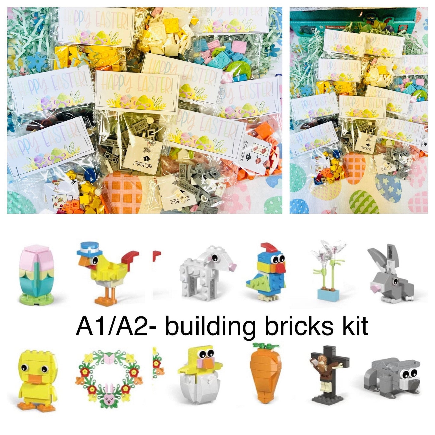 A1-pack of 6 individually packaged Easter themed building bricks (non lego)- complete with instructions