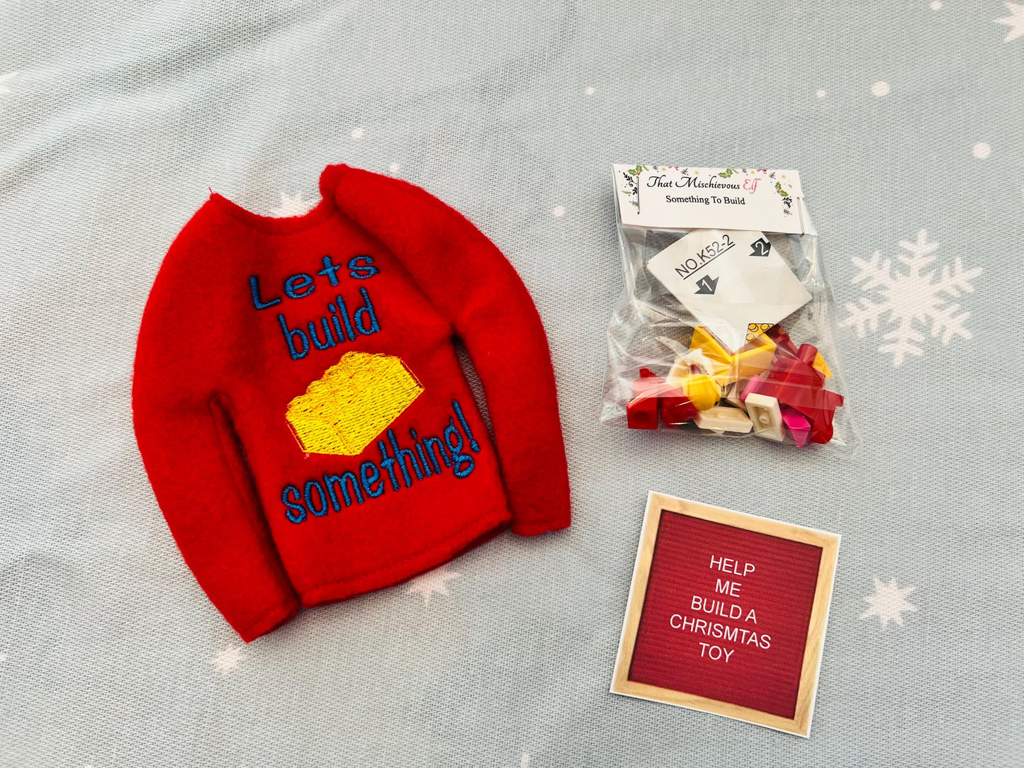 ELf Building Brick shirt and activity nightly elf kit elf prop elf outfit christmas elf doll clothes elf lego