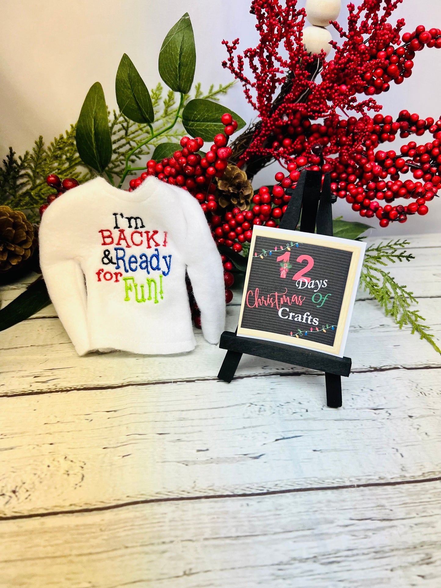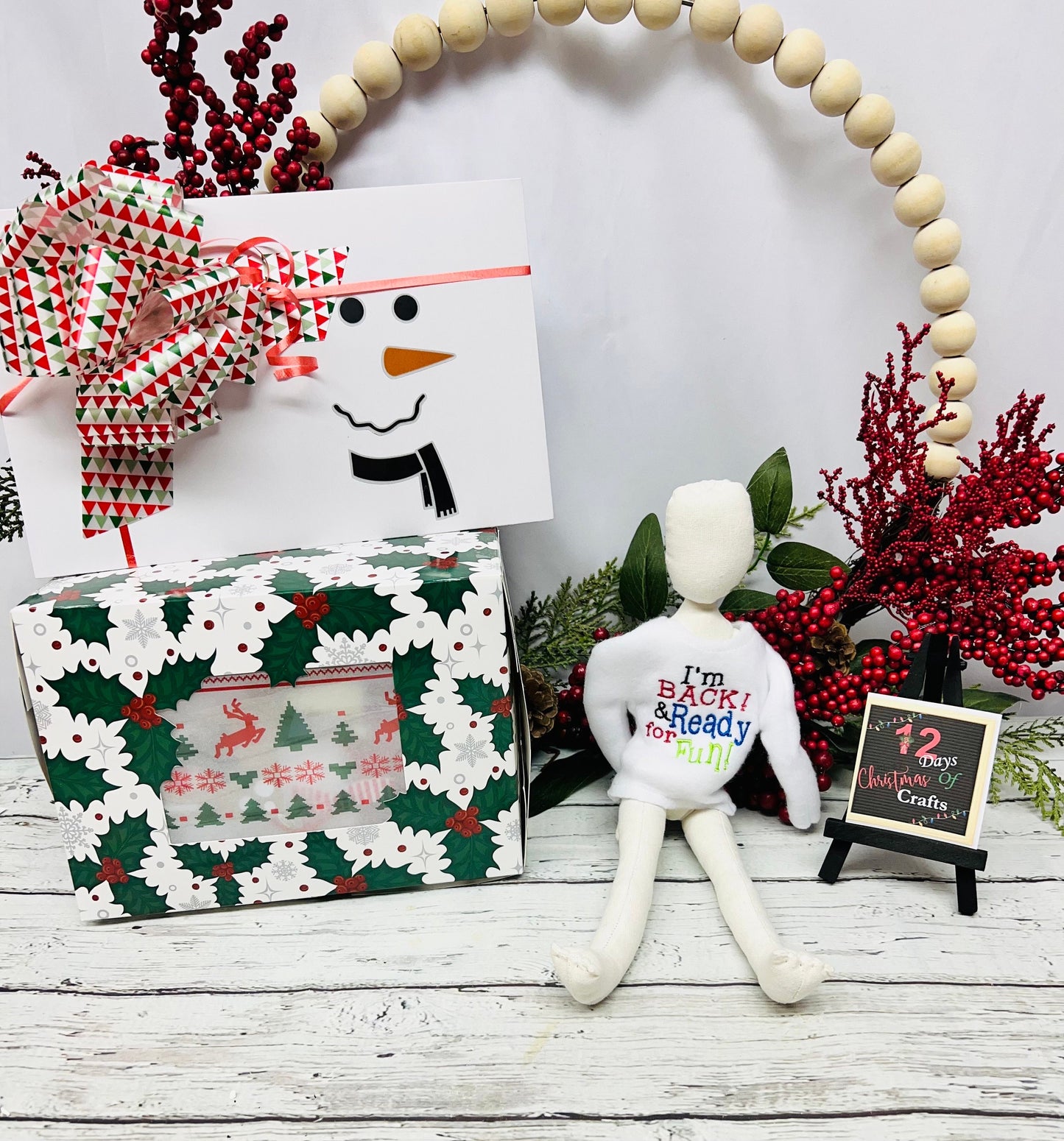 Celebrate the first 12 days of Christmas with this festively fun craft advent from yours truly, your elf! Each craft is hidden in a numbered Christmas package, ready to delight your little ones! Find your numbered package each day and create your lasting memories! Your elf will come with a sign reading “12 days of Christmas crafts” to sit on a black easel and a shirt saying “I’m back! and ready for fun!”