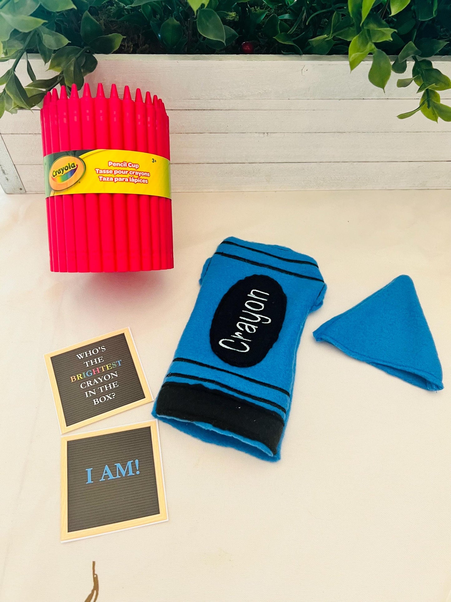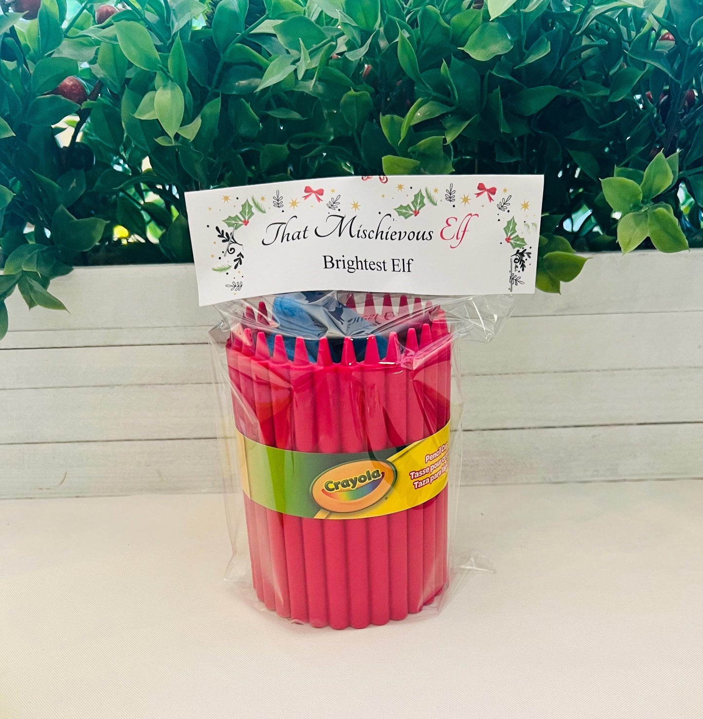 Have your elf Arrive in style this holiday! Who’s the brightest elf? Your elf is! Dressed comfortably in a crayon costume complete with a freshly sharpened hat, your elf will be bright and cozy in a colorful crayola container. Choose your container color.