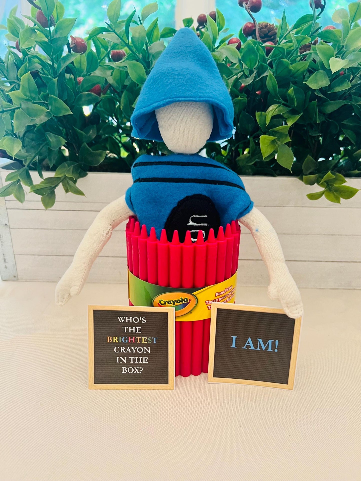 1 cardstock sign “who’s the brightest crayon in the box?”