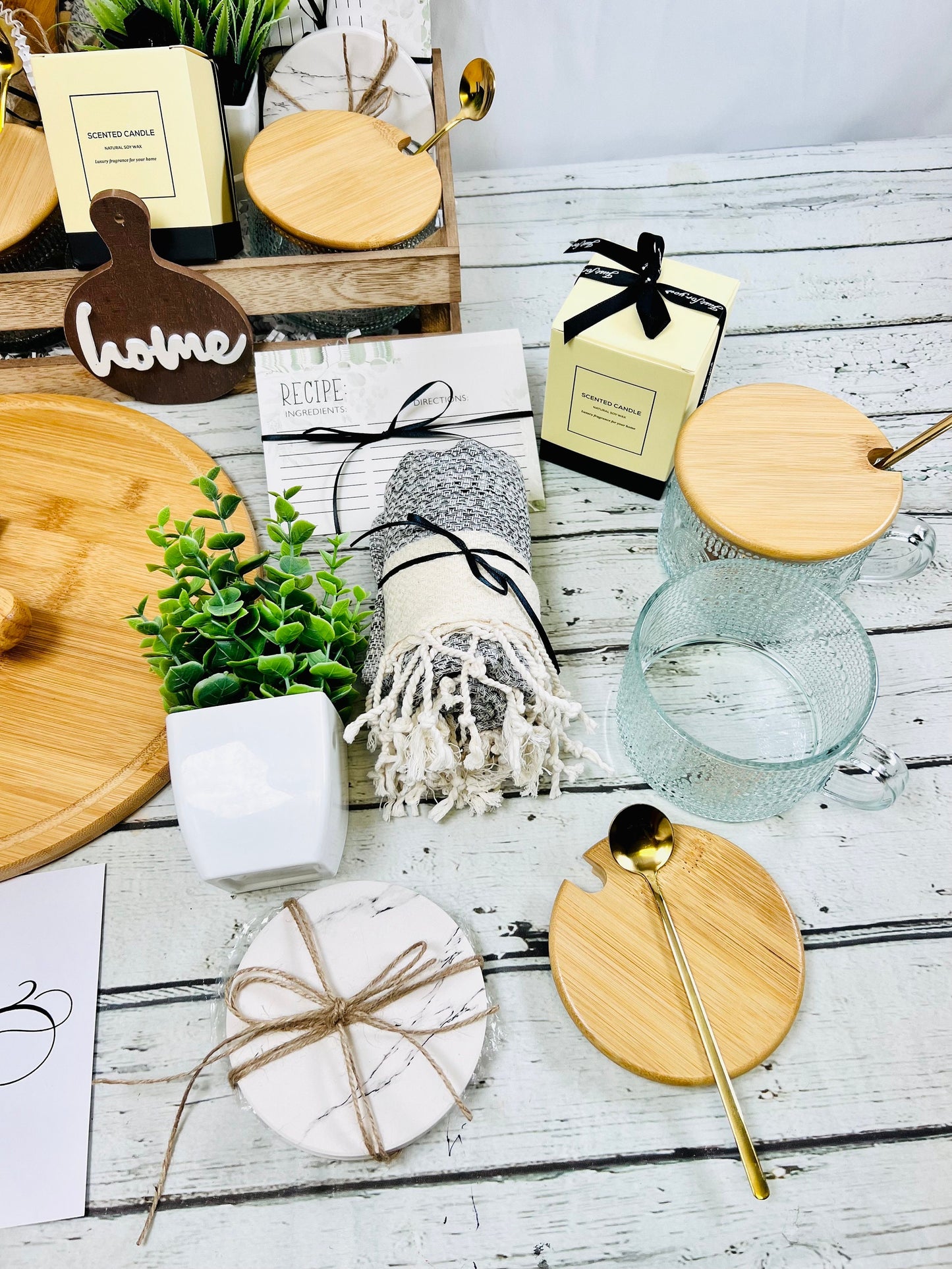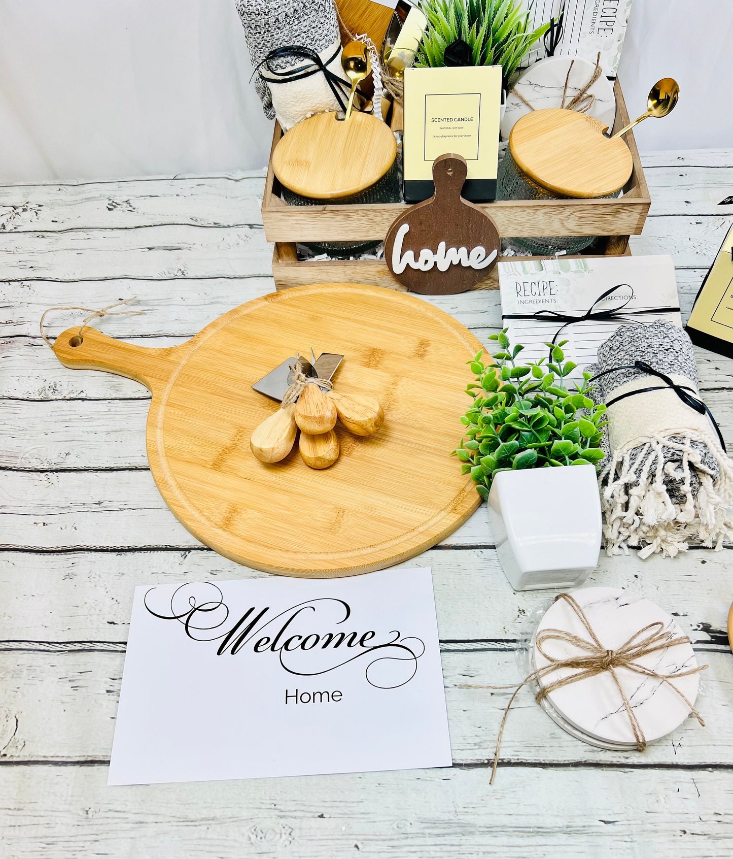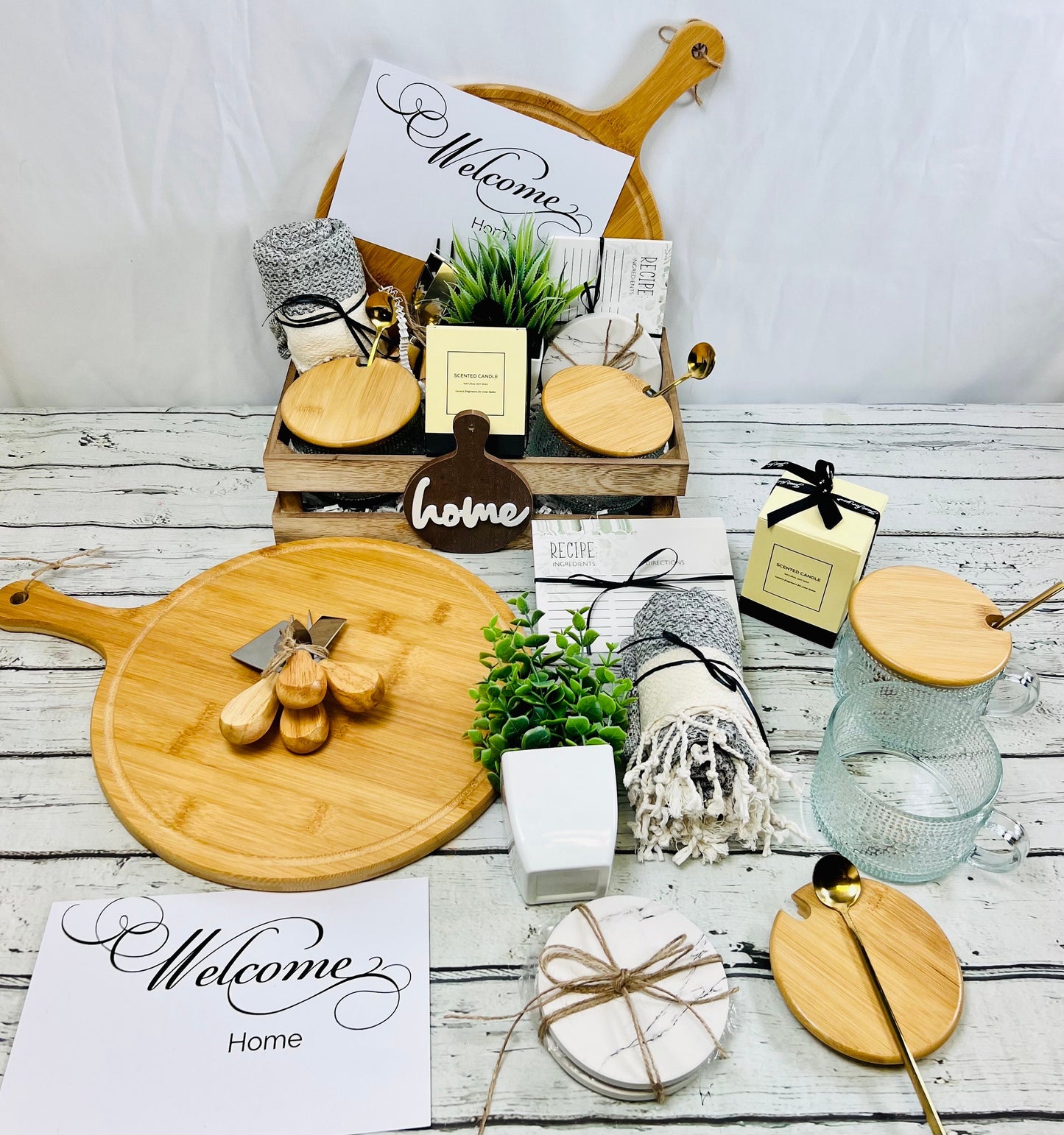 Gift your clients, friends, co-workers, etc with this pre-filled house warming gift basket. This basket includes: