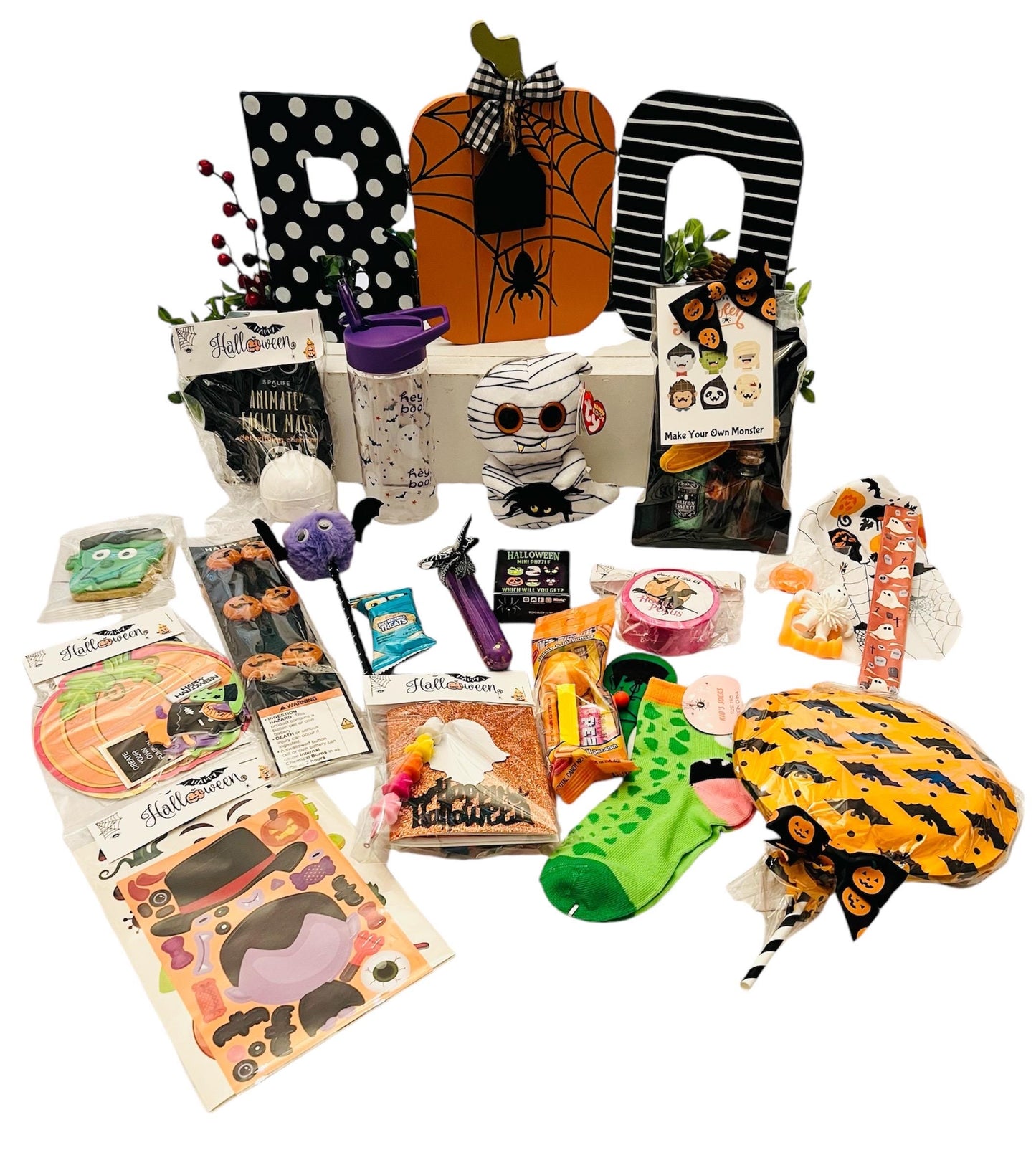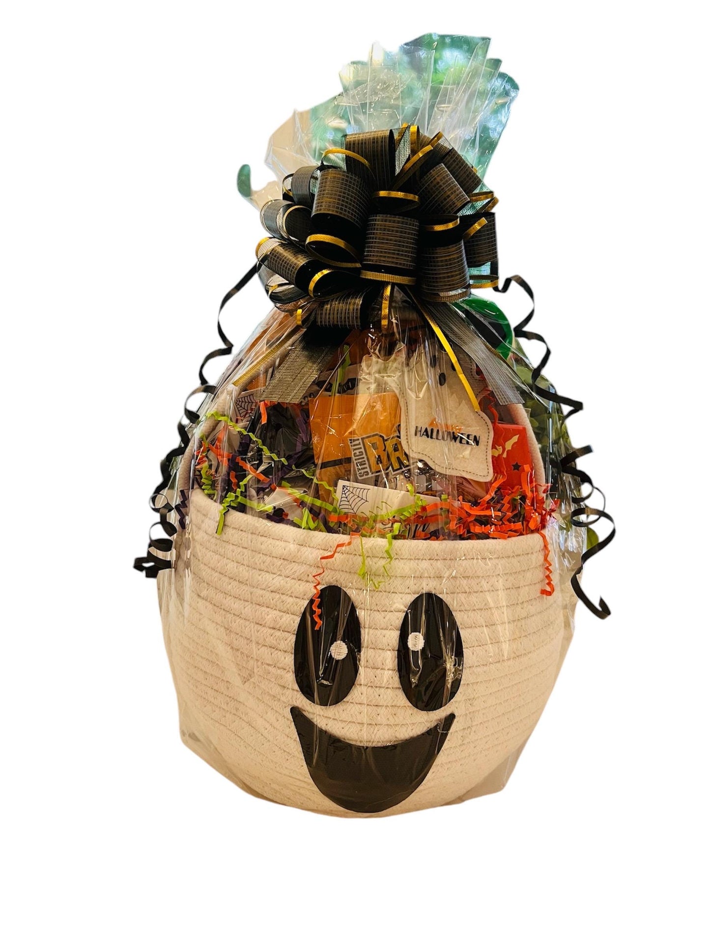 Send your little boys or ghouls this frightfully delightful MONSTER gift basket. This woven basket is filled with all kinds of Halloween goodies, both tricks or treats!