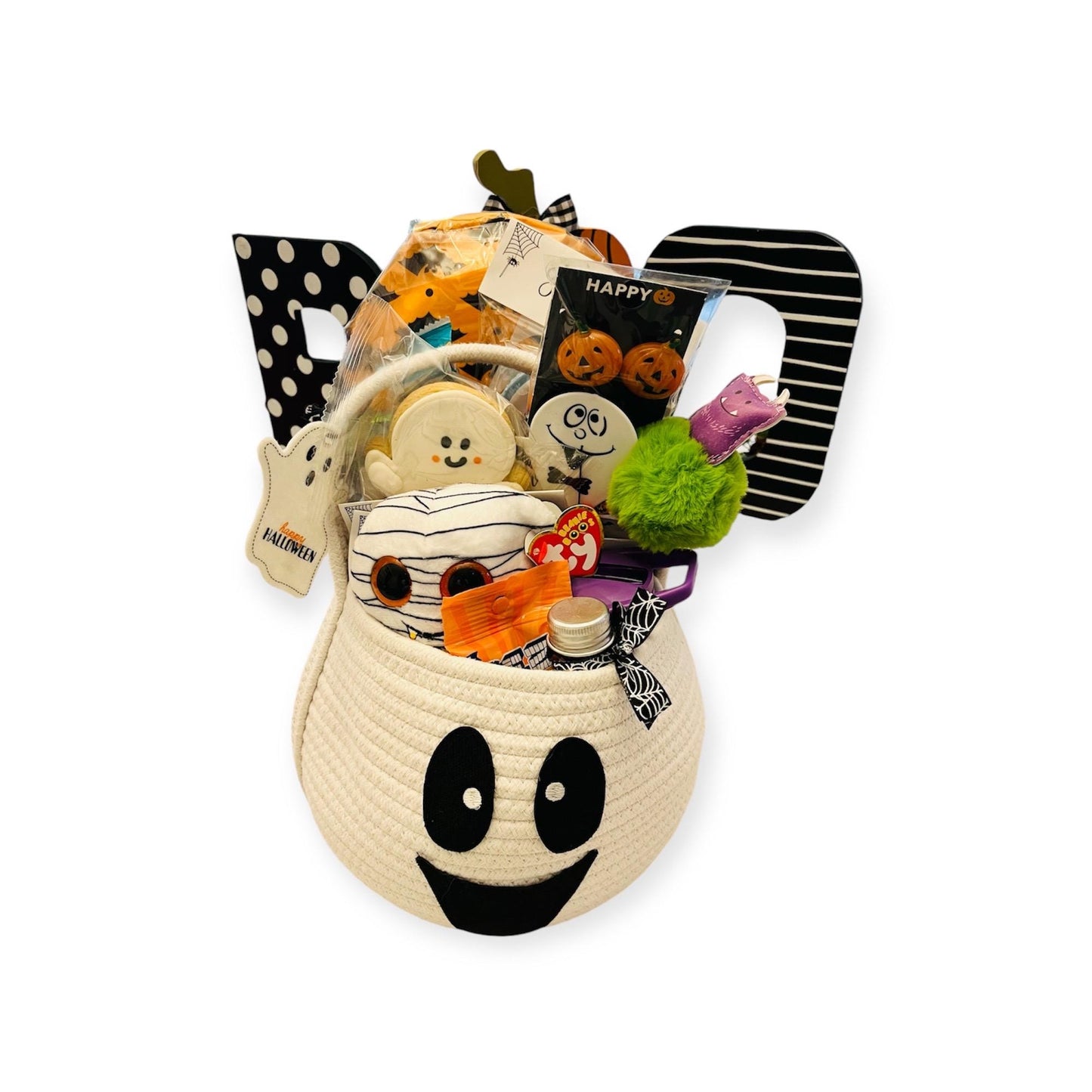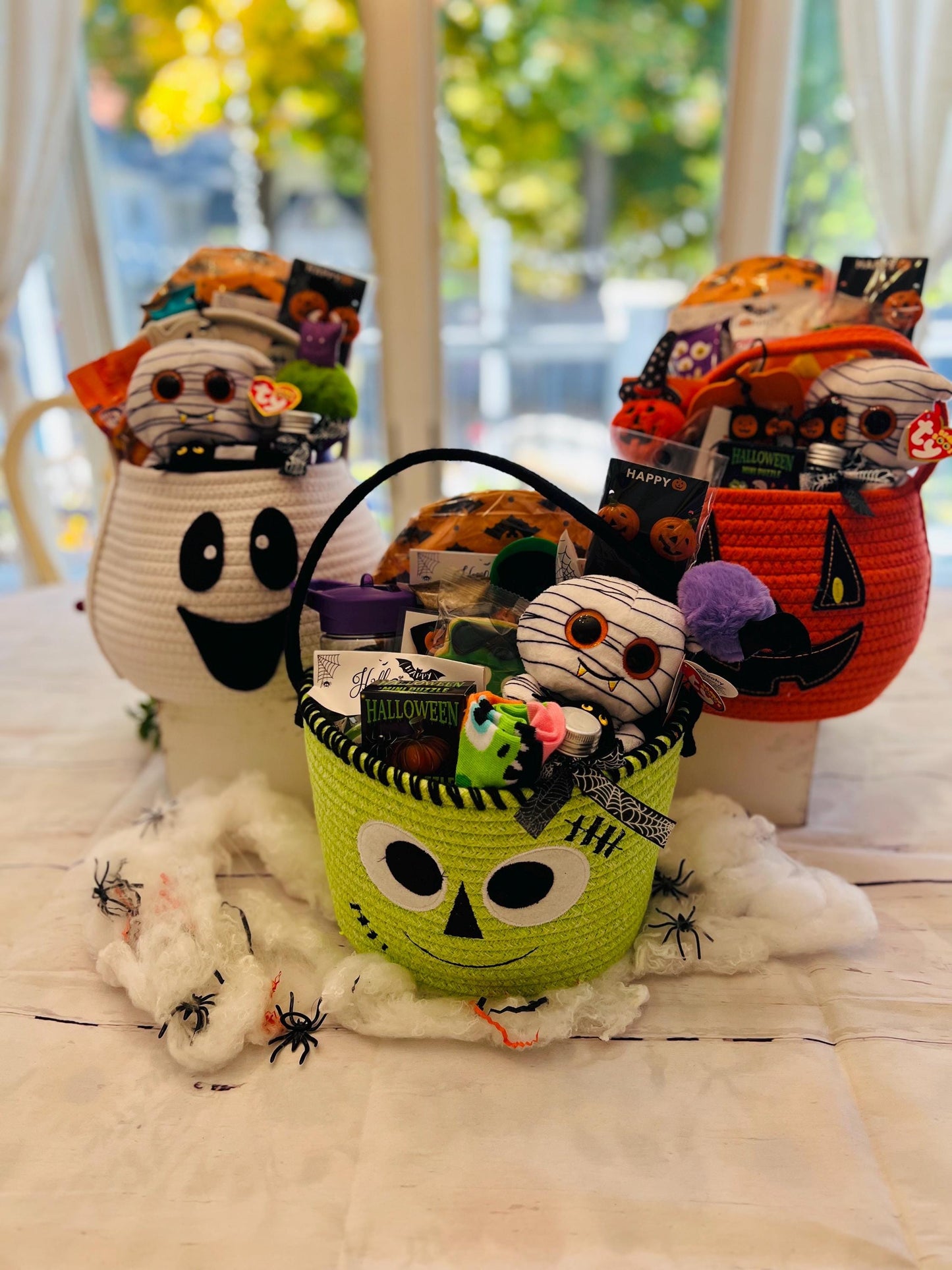 Kids prefilled Halloween monster pumpkin ghost bucket, boo bucket, Halloween gift basket trick-or-treat Halloween craft Halloween activity
