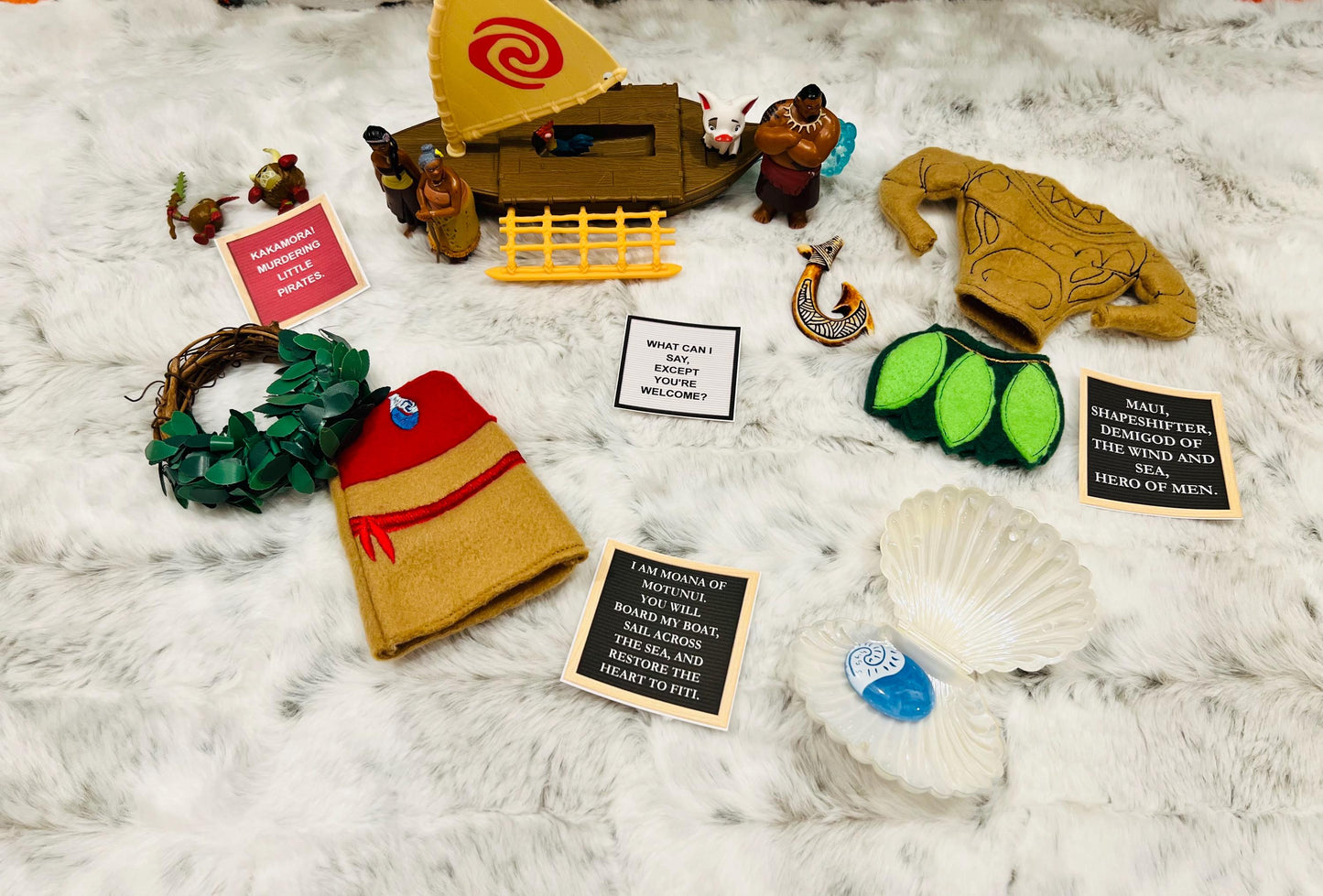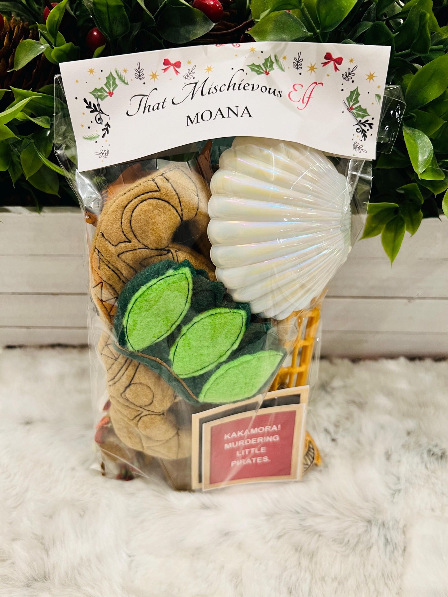 Calling all Moana fans! This elf kit is the addition you need to your nightly elf shenanigans! Choose between Moana or Maui for your elf’s outfit with corresponding props. Or choose both to complete the scene! (Elf dolls are not included in the kits).