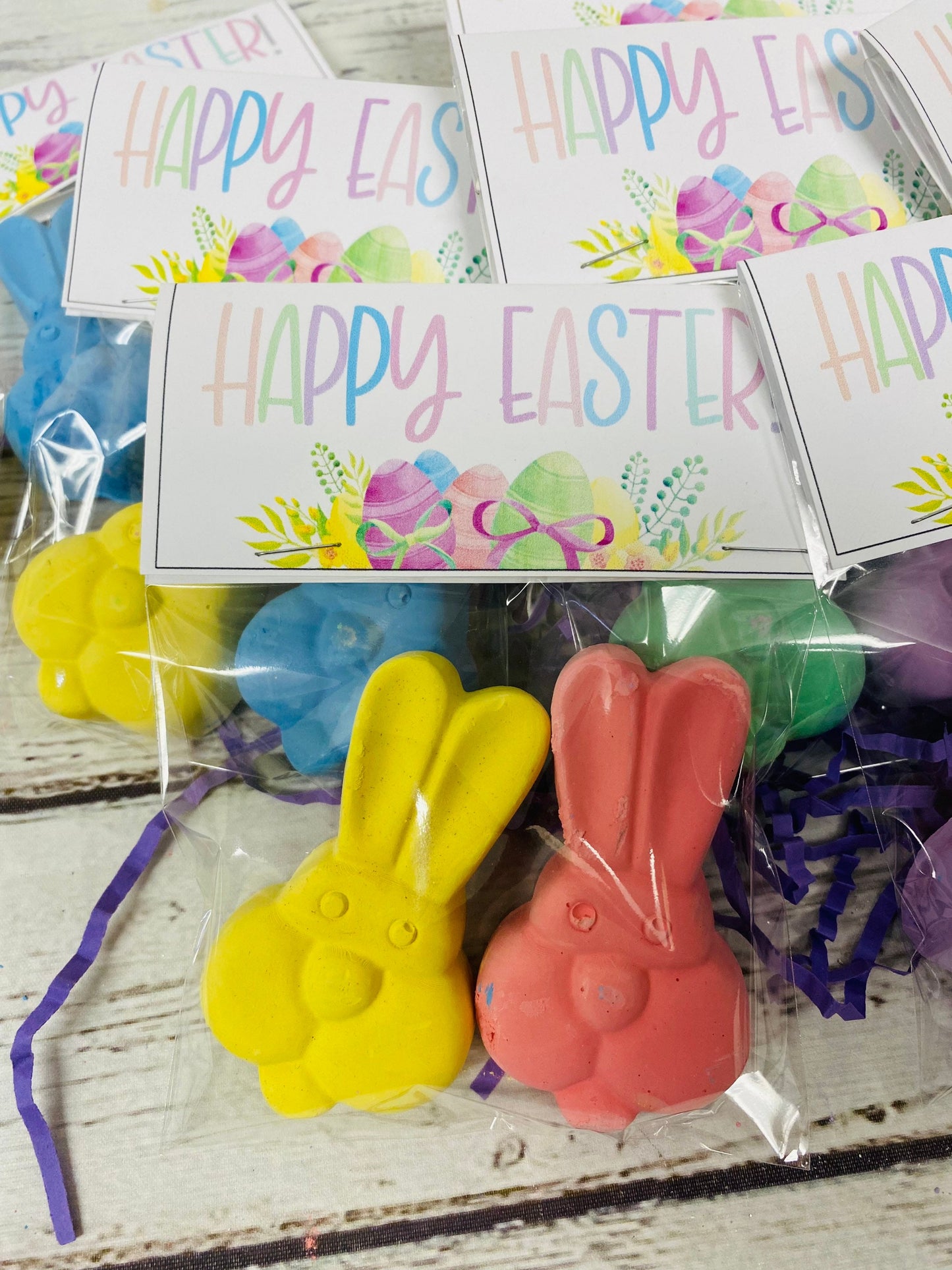 New Easter basket filler/stuffer add on. Listing is for 1 bag. Each bag is filled with 2 scented sidewalk chalk bunnies.
