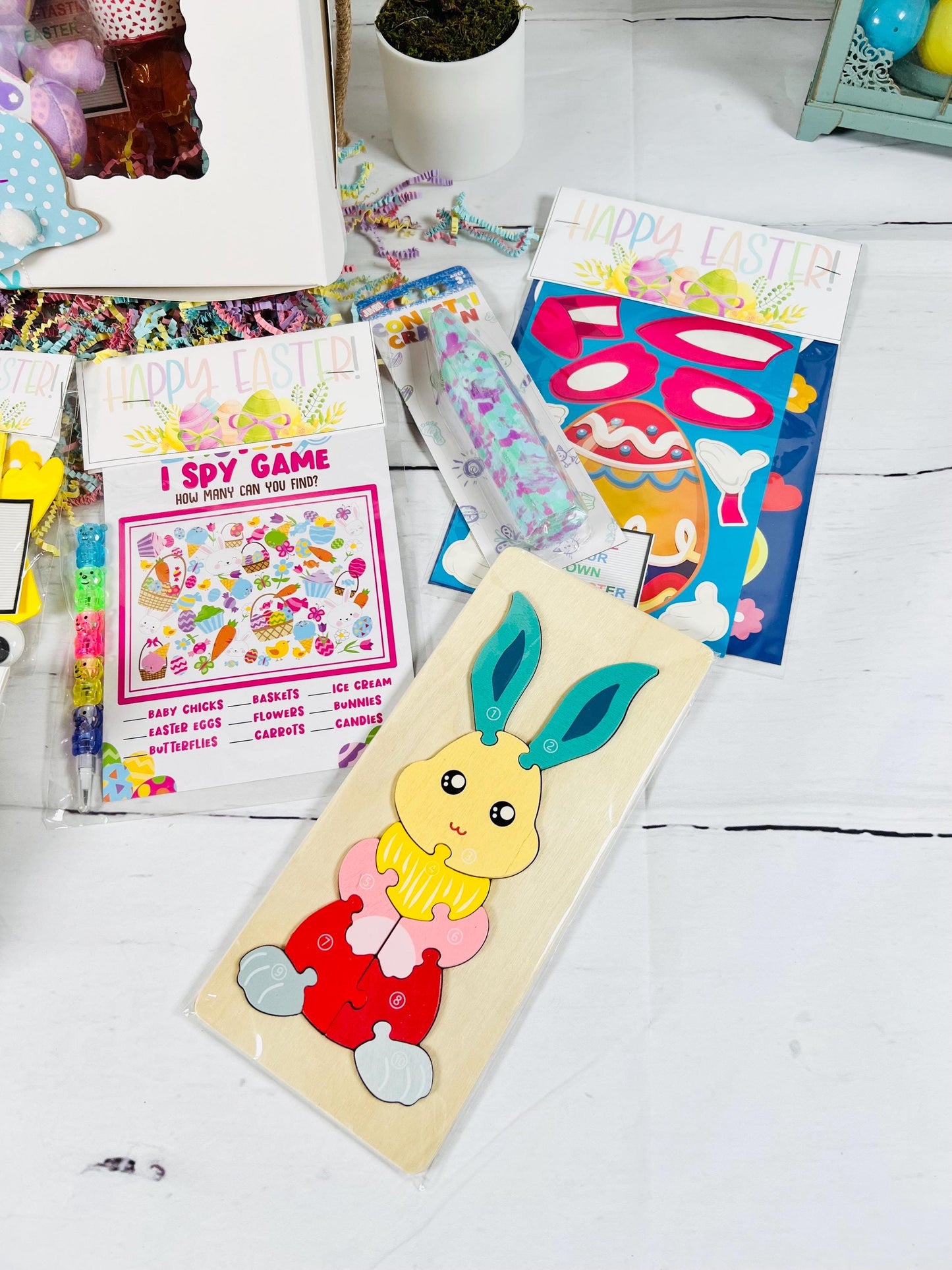 Easter Party Box – Fun-Filled with 17 Easter-Themed Toys & Activities. Add a personalized Easter themed wooden tag to your gift to make it Eggs-tra special!