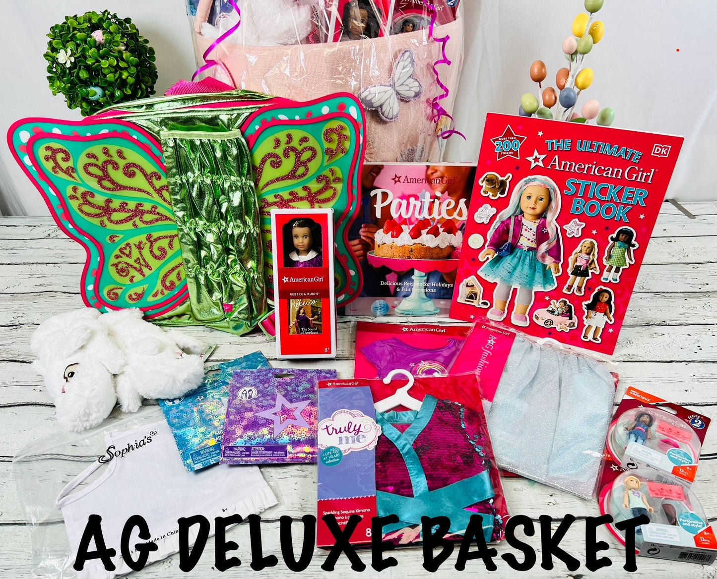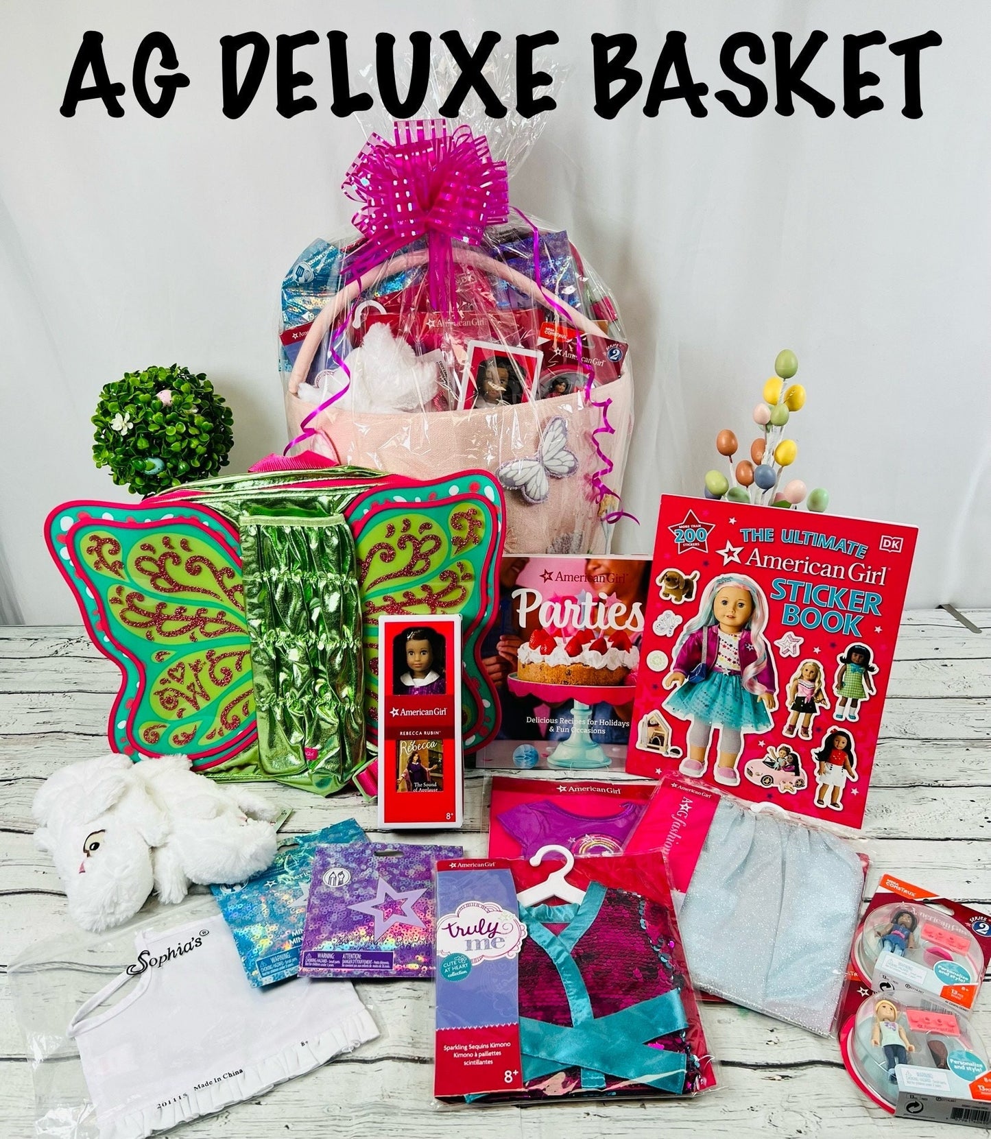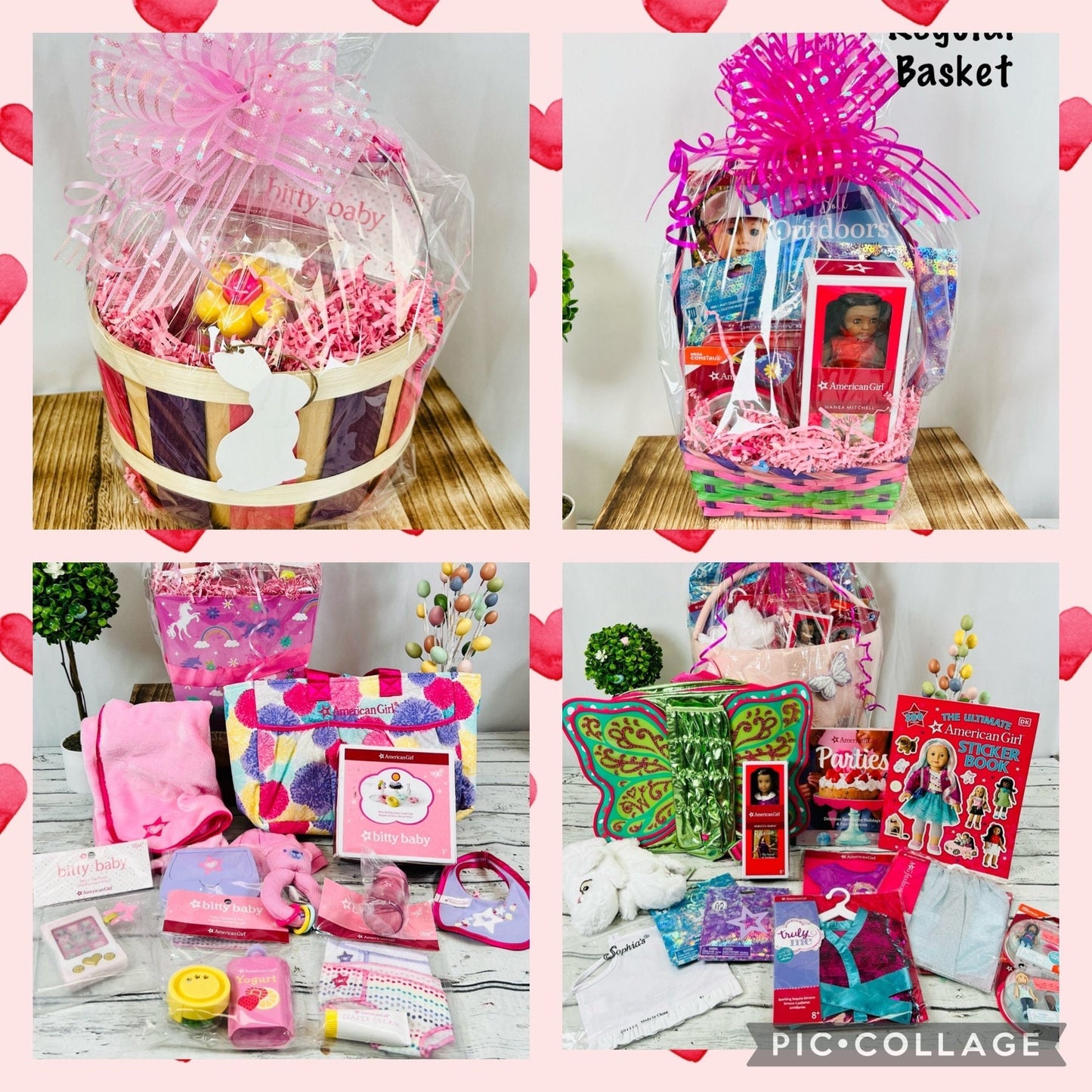 Pre Filled American Girl and Bitty Baby themed gift basket for girls | American Girl 18" doll accessories | Bitty Baby accessories for girls