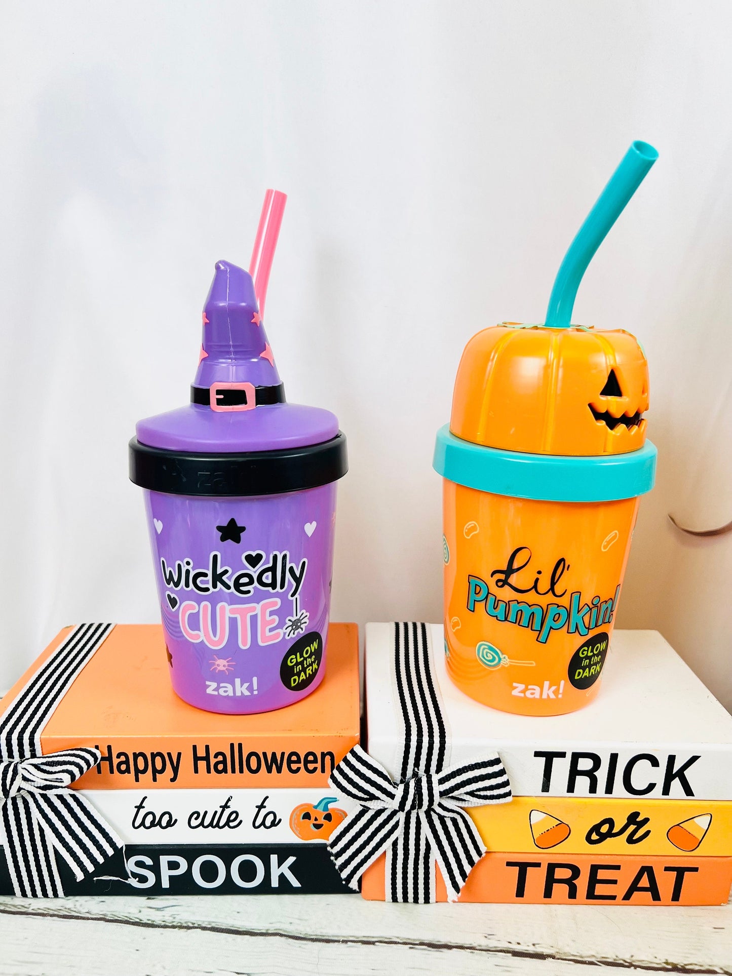 1 Glow in the Dark Halloween cup container with straw (Choose your style (witch or pumpkin))