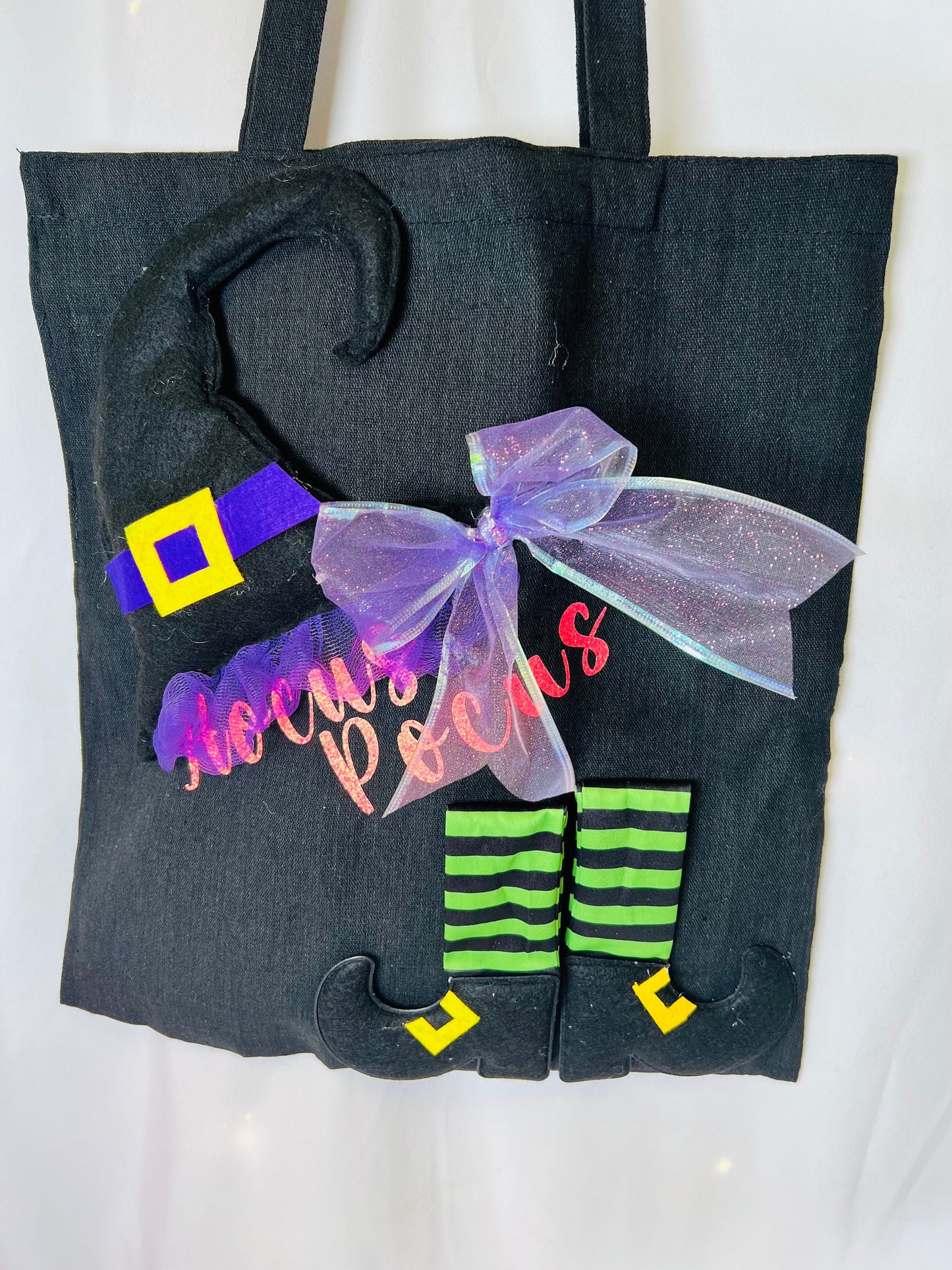 Add something a little spook-tacular to your trick or treating this year with a personalized trick or treat Halloween canvas bag. Choose your creature and let the fun begin! Each bag is black canvas material, size 15”Lx14”W. Add your little ones name in style with glitter lettering (color varies between green or orange).