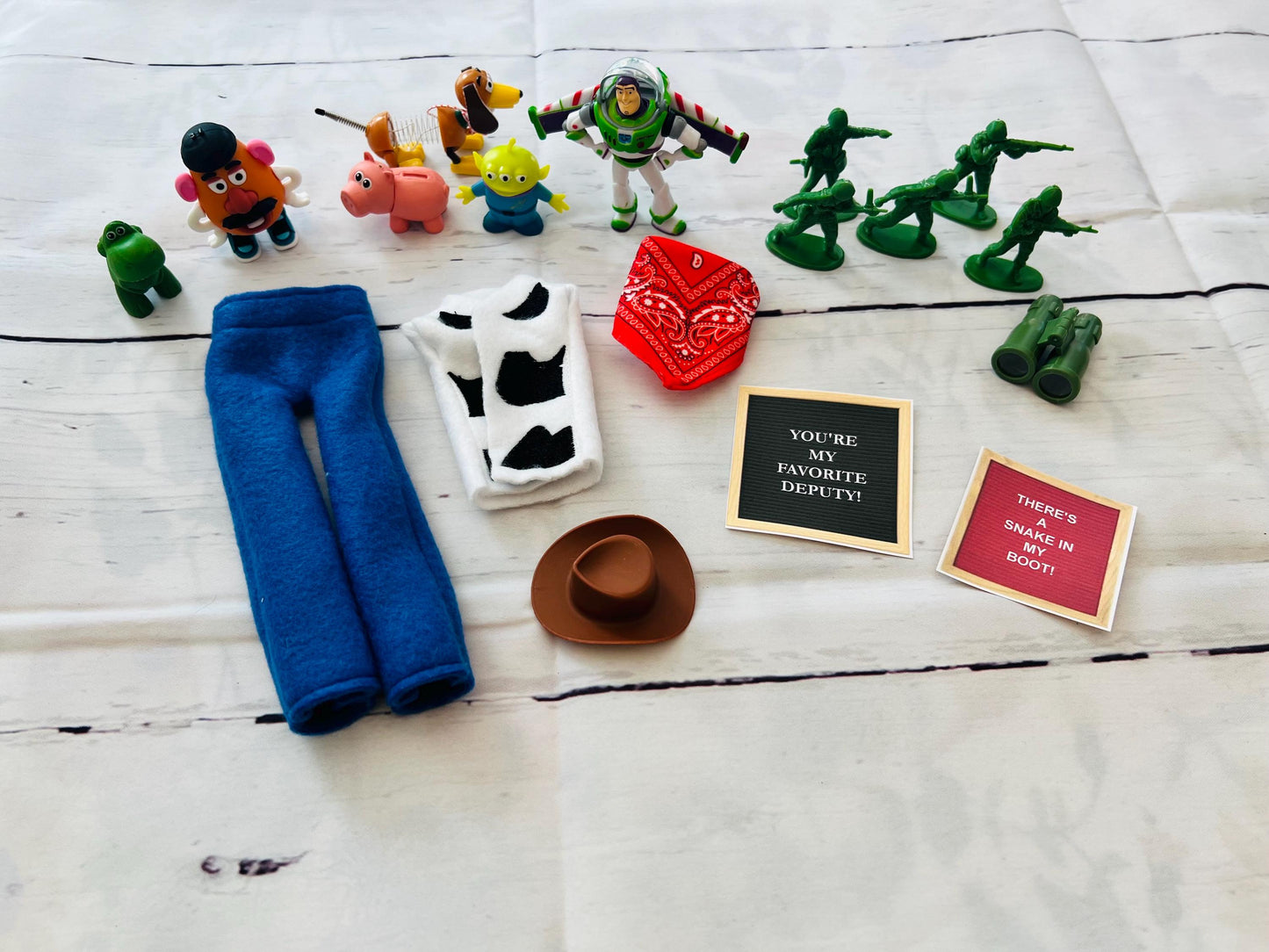 1 woody costume complete with bandana and Sherri’s hat (hat does not fit on elf’s head)